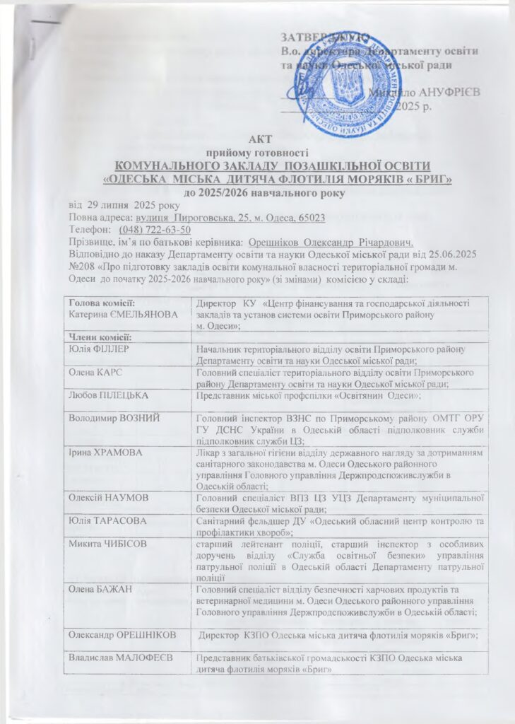 Комунальний заклад позашкільної освіти "Одеська міська дитяча флотилія моряків "Бриг"