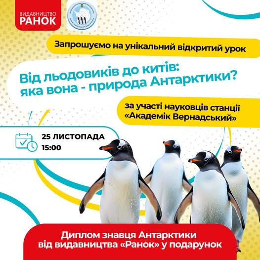 Форма реєстрації на відкритий урок 25.11.2025 «Від льодовиків до китів: яка вона – природа Антарктики?»